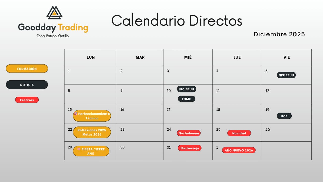 El lunes entra Diciembre… y viene NFP, Bajadas de tipos? datos de inflación… Operaremos en vivo estos dias, te comparto el calendario de directos del grupo privado: